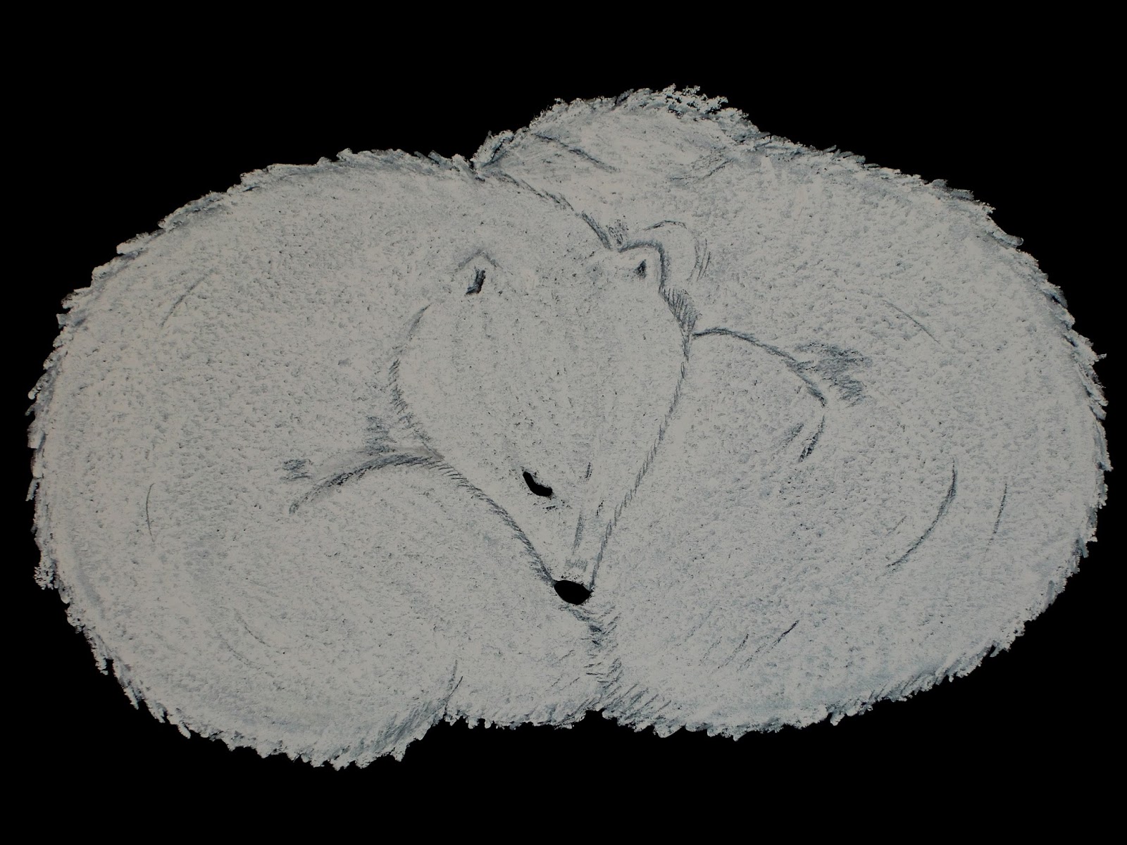 sentindo-se ameaçado, enrolou-se. O coelho cheirou-o, empurrou-o com o focinho,
